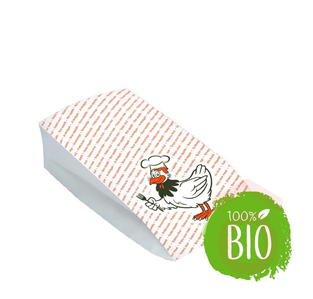 A kétrétegű, zsírálló grillcsirkés papírzacskó ideális választás sült ételek, grillezett csirke, vagy zsiradékot tartalmazó ételek elviteléhez. A színes, általános nyomat vonzó megjelenést biztosít a csomagolt terméknek.