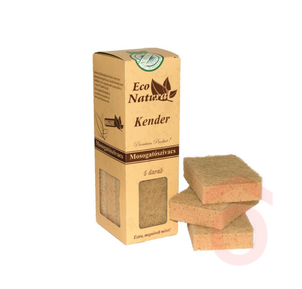 Kenderrost felhasználásával készült, természetes alapanyagú mosogatószivacs. Rendkívül hatékonyan távolítható el vele a legmakacsabb szennyeződés is. A szivacs PU habból készült. A hatékony, de mégis kíméletes dörzshatást a felhasznált növényi eredetű anyagoknak köszönhetjük, súrolóanyagként a diófélék, csonthéjasok héja került alkalmazásra. Újrahasznosított alapanyagok felhasználásával készült.