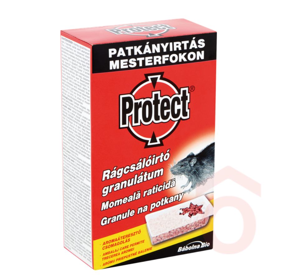 A Protect rágcsálóirtó granulátum élelmiszeripari minőségű gabonából készül, amely a patkányok egyik legkedveltebb tápláléka. A speciális, aromaáteresztő fóliával zárt csomagolás lehetővé teszi, hogy a rágcsálók könnyedén érzékeljék a csalogató illatokat, és ők maguk rágják ki a csomagot – így a fogyasztás egyértelműen nyomon követhető. A tálcás kiszerelés patkányirtásra kifejezetten alkalmas, könnyen kihelyezhető pincékben, gazdasági épületekben vagy más veszélyeztetett területeken.
