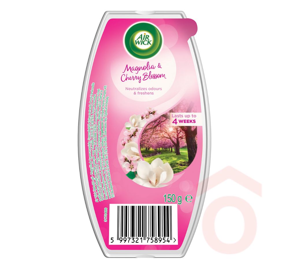 Az Air Wick illatosító gél ideális megoldás kisebb helyiségek, például fürdőszoba vagy WC illatosítására. Diszkrét megjelenése mellett hatékonyan semlegesíti a kellemetlen szagokat, miközben virágos, friss magnólia és cseresznyevirág illatot áraszt.