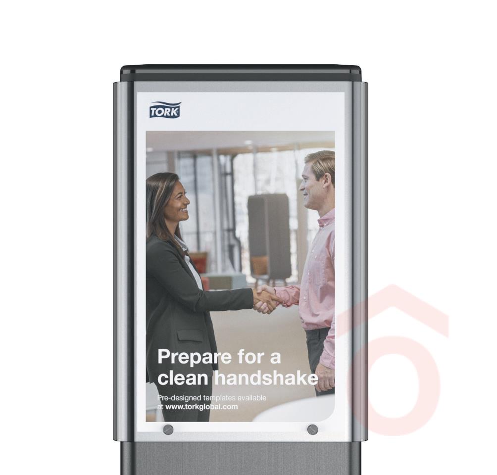 A Tork AD-A-Glance® panel hatékony és diszkrét kommunikációs eszköz, amely közvetlenül a higéniai állványra helyezhető. Ideális a , de bármilyen egyéb üzenet, logó vagy márkaüzenet is megjeleníthető rajta. Kiválóan használható irodai, oktatási és nyilvános terekben, ahol segít fenntartani a higiéniás tudatosságot. Tartós, műanyag kialakítása biztosítja a hosszú élettartamot és az egyszerű tisztítást.