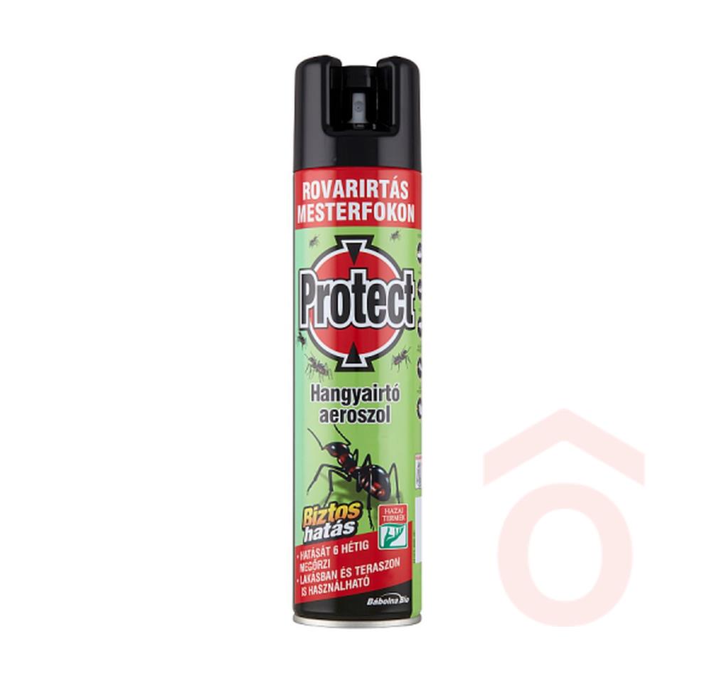 A Protect hangyairtó aeroszol megbízható védelmet nyújt zárt térben és teraszonhangyák, valamint más rejtett életmódú rovarok – mint például csótány, ágyi poloska, bolha vagy ezüstös pikkelyke – ellen. Könnyen használható aeroszolos kivitel, amely akár 6 hétig tartó hatékonyságot biztosít a kezelt felületeken. Ideális megoldás háztartási használatra, különösen, ha a hangyák tömegesen jelennek meg a lakásban vagy teraszon.