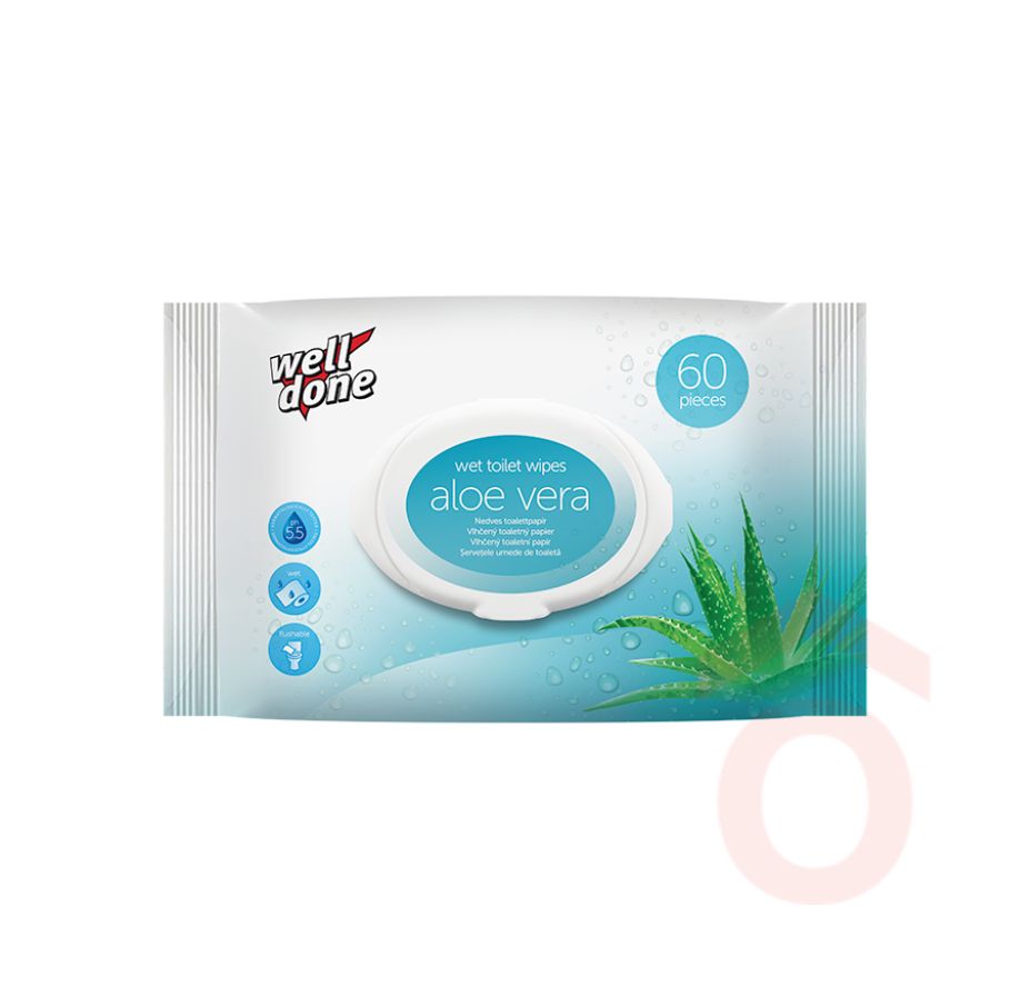 A Well Done Aloe Vera illatú nedves toalettpapír puha és higiénikus tisztítást biztosít a bőrnek, így tökéletes kiegészítője a száraz toalettpapír használatának. Praktikus csomagolása révén bármikor kéznél lehet, otthon vagy útközben is.