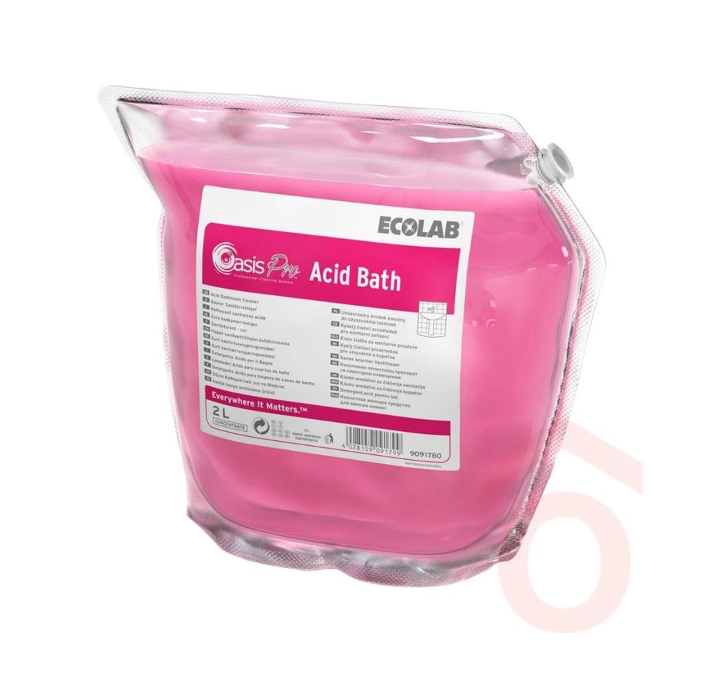 Az Oasis Pro Acid Bath egy koncentrált, savas fürdőszobai tisztítószer, amely hatékonyan távolítja el a vízkövet és más fürdőszobai szennyeződéseket. Ideális választás minden saválló felülethez, például porcelánhoz, kerámiához vagy krómozott szerelvényekhez.