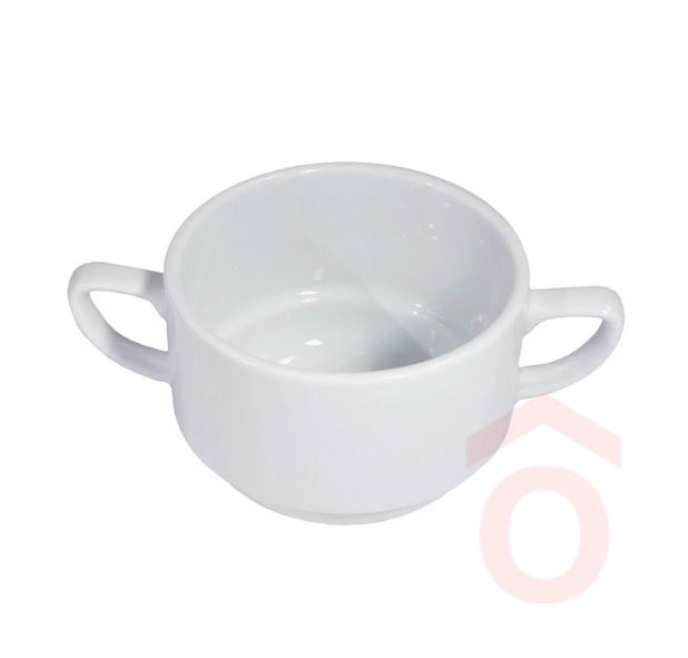 A Glória Hotel porcelán levescsésze 0,32 literes űrtartalommal, praktikus kétfülű kialakítással készült, amely megkönnyíti a forró levesek, krémlevesek vagy előételek tálalását és fogyasztását. Klasszikus, hófehér porcelán, diszkrét mintával – ideális éttermekbe, szállodákba.