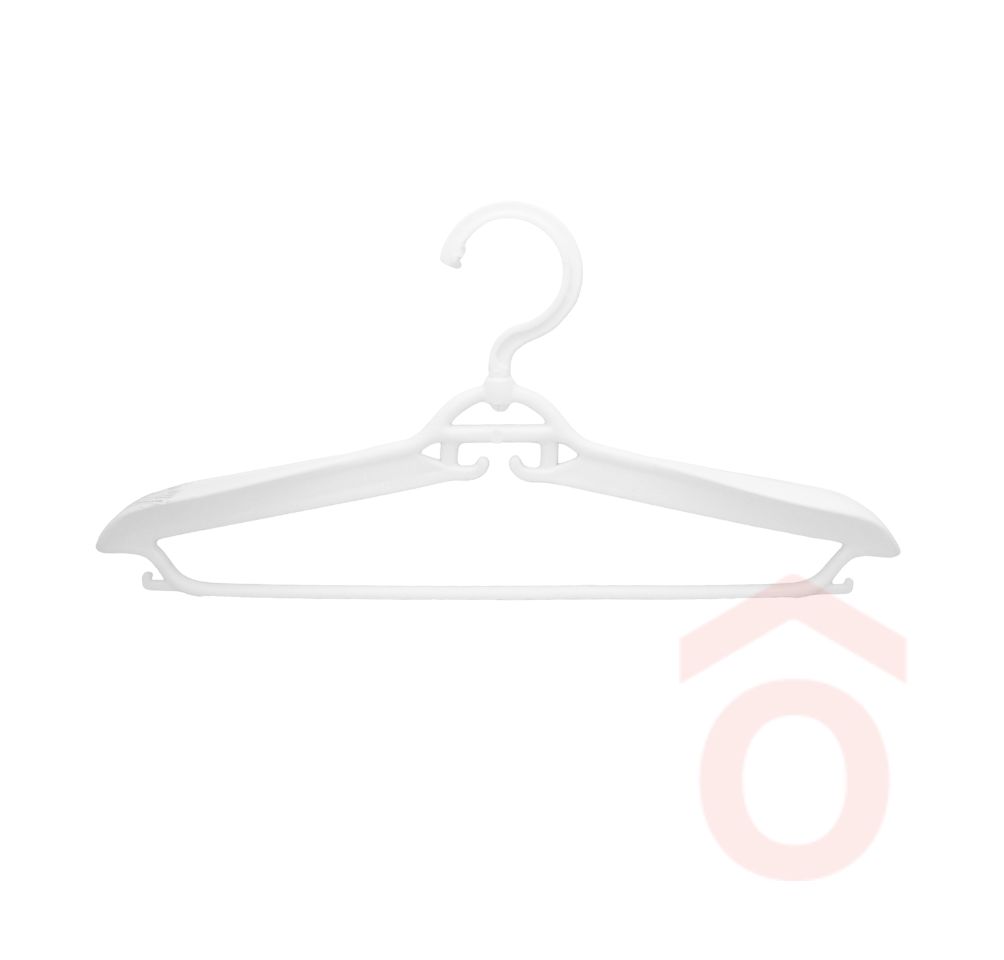 Praktikus műanyag nadrágtartós vállfa, amely ideális megoldás ingek, zakók és nadrágok rendezett tárolásához. A vállfa alsó részén található rúd lehetővé teszi a nadrágok gyűrődésmentes felakasztását.