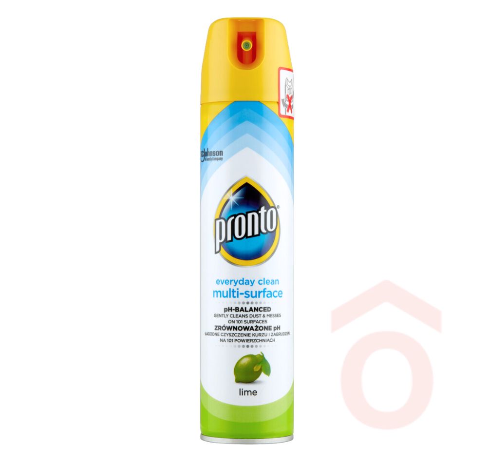 A Pronto felületápoló aeroszol lime illattal hatékonyan eltávolítja a port, ujjlenyomatokat, miközben csillogóvá varázsolja a felületeket zsíros nyomok nélkül. Kiválóan használható fa, fém, kő, üveg és elektronikai felületeken.