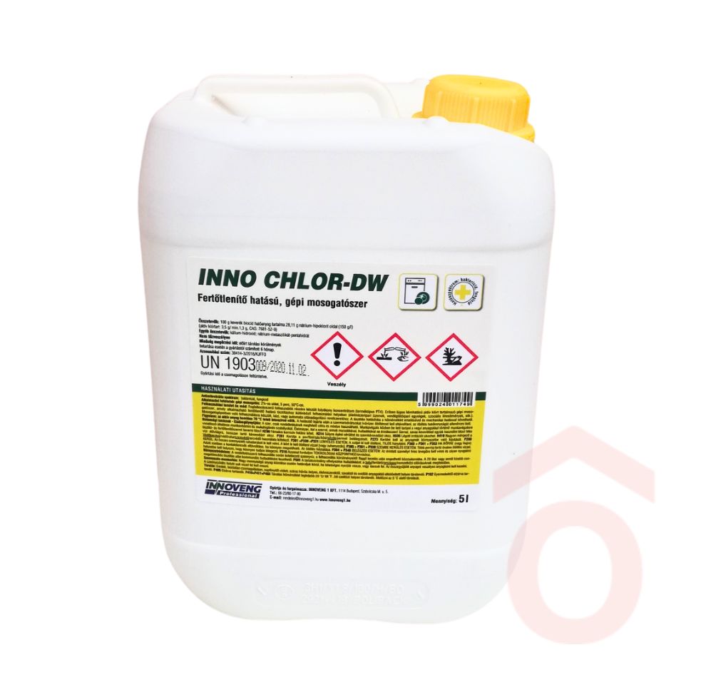Az Innoveng Inno Chlor-DW egy erősen lúgos kémhatású, aktív klórt tartalmazó gépi mosogatószer, amely fertőtlenítő hatású tisztítást biztosít az élelmiszeriparban, vendéglátóhelyeken, vagy szociális intézményekben. Baktericid és fungicid hatásspektrumának köszönhetően hatékonyan távolítja el a szennyeződéseket és a mikroorganizmusokat.