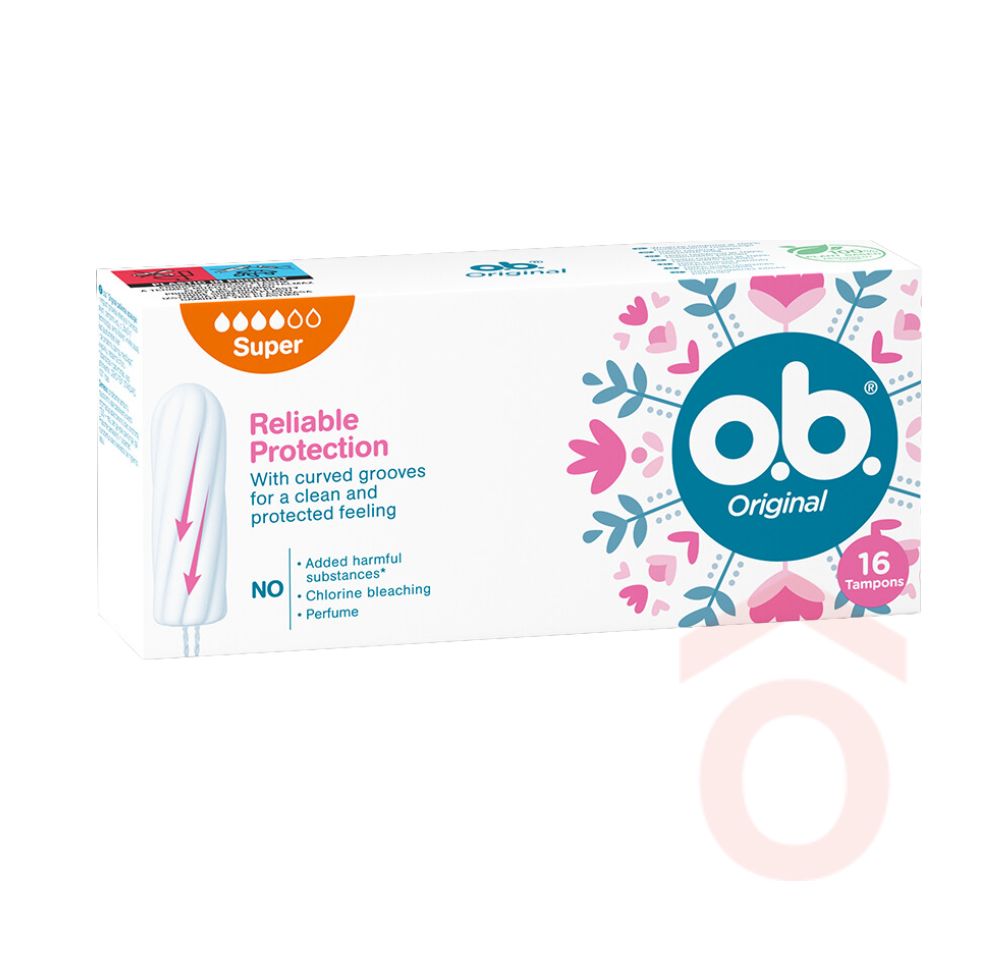 Az O.B. Original super tampon kifejezetten erős vérzés idejére készült, hogy magabiztos és megbízható védelmet nyújtson. A csavart bordázat a folyadékot hatékonyan vezeti a tampon belsejébe, ezzel növelve a biztonságérzetet a nap bármely szakában.