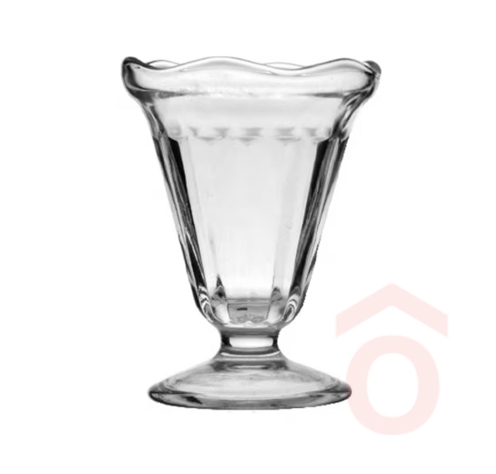 Chicago üveg fagylaltkehely, hullámos peremmel és bordázott oldallal kialakított. Mosogatógépben mosható.