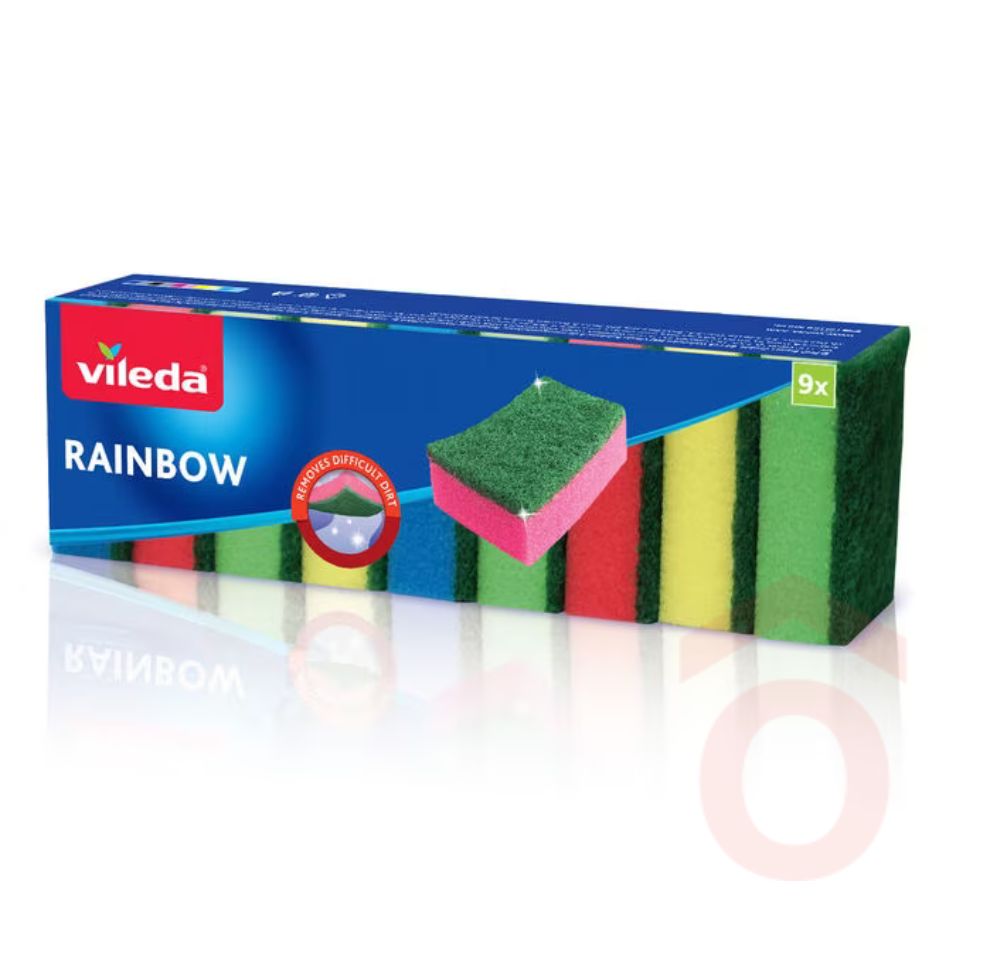 A Vileda Rainbow szivacs egy zöld dörzsfelülettel, valamint kiváló tisztító- és nedvszívó képességgel rendelkező szivacs. A több színben elérhető szivacs nem csak a mosogatáskor lehet segítségünkre, hanem otthonunk más területein is használhatjuk. A különböző színű szivacsok segítenek, hogy minden helyiségben más színűvel takaríthasson.