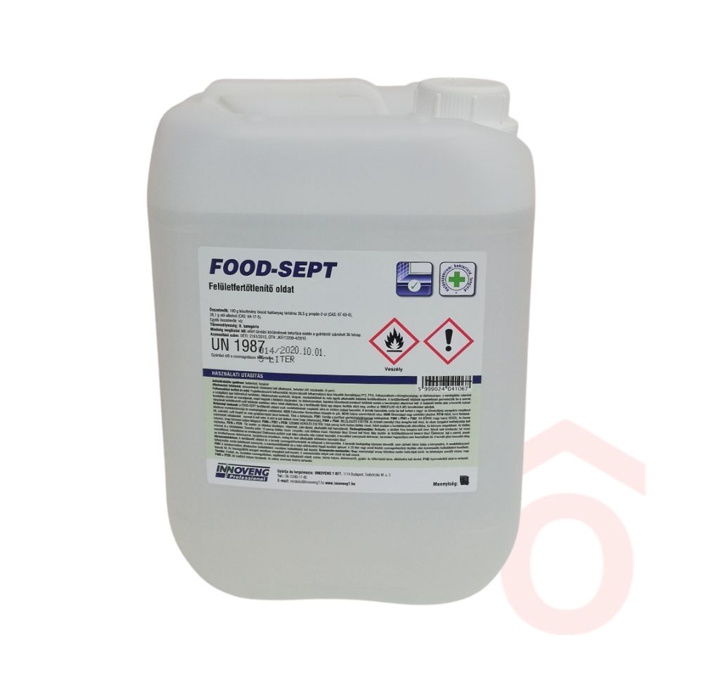 Az Innoveng Food Sept alkoholos, aldehidmentes felületfertőtlenítő kiválóan alkalmazható a közegészségügy, az élelmiszeripar, a vendéglátás és a szolgáltatóipar különböző területein. Baktericid és fungicid hatásspektrumának köszönhetően megbízható védelmet nyújt a mikroorganizmusokkal szemben.