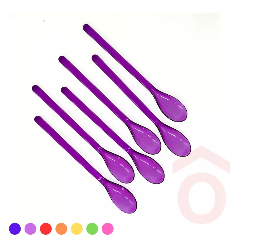 Vidám színű, tartós műanyagból készült szörpöskanalak, a csomag 6 db-ot tartalmaz.