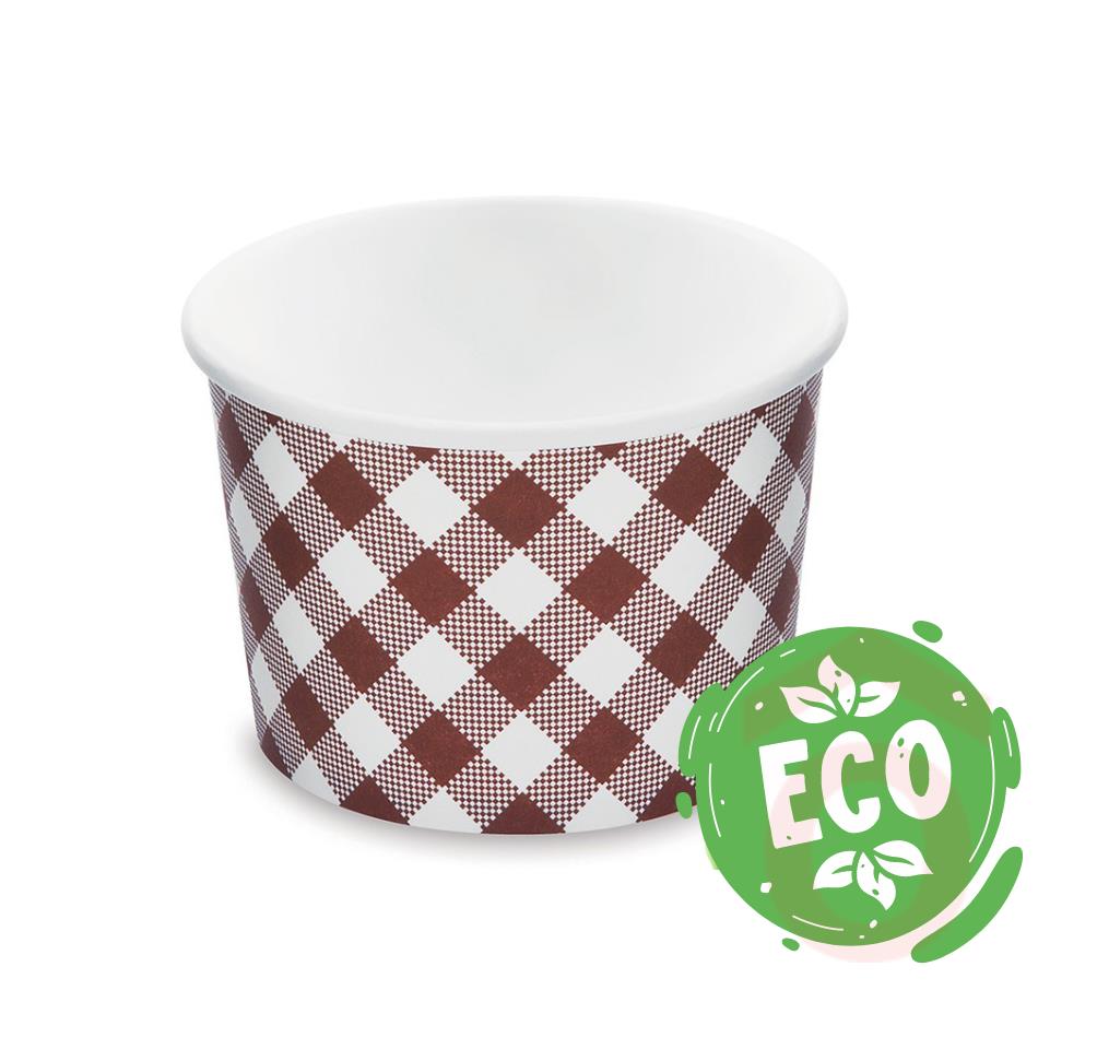A barna kockás mintával ellátott 500 ml-es leveses tál ideális elviteles ételek, levesek, rizs- és tésztés fogások szervírozásához. Polietilénes (PE) belső rétege meggátolja a zsírok és olajok átszivárgását, ezáltal higénikus és biztonságos csomagolási megoldás.