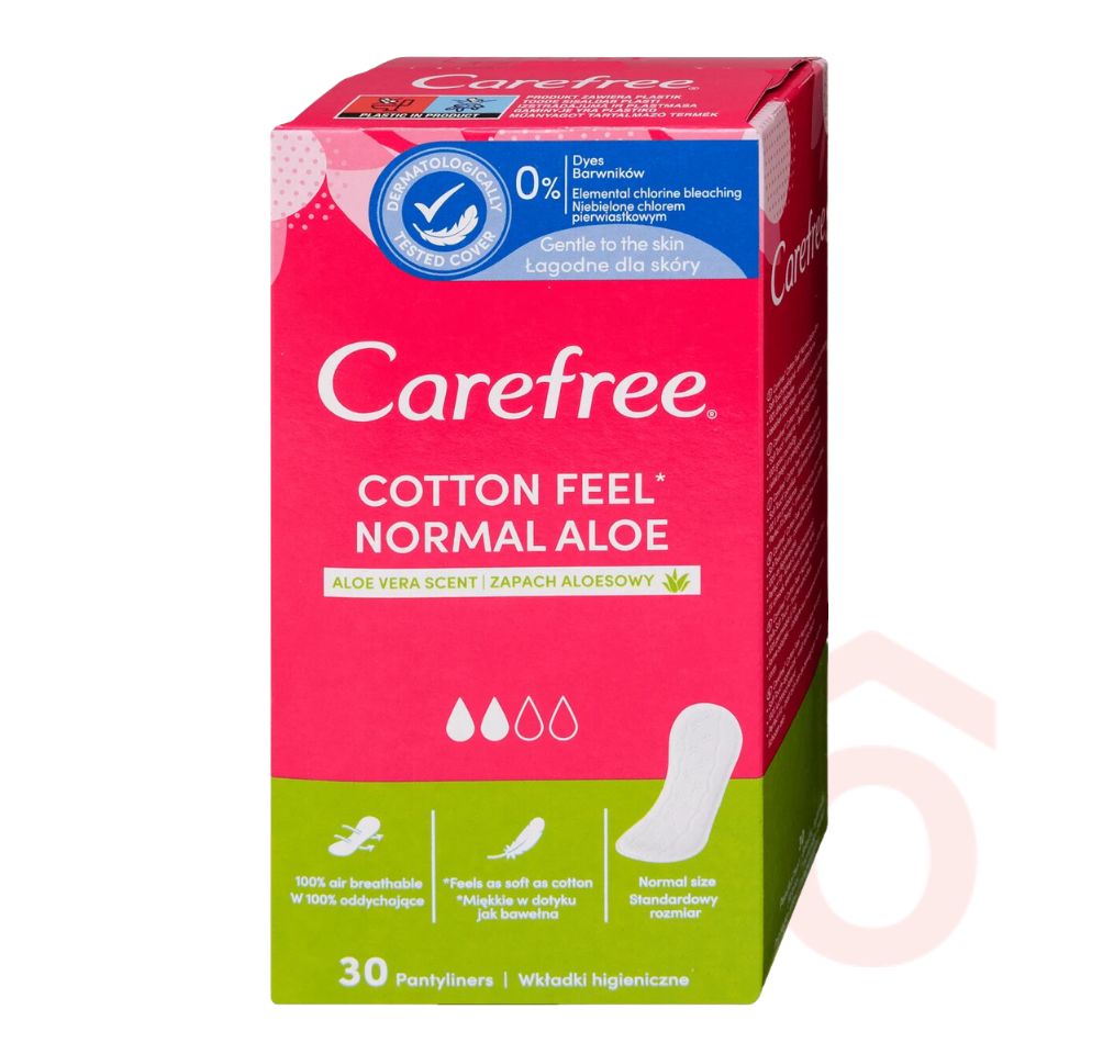 A Carefree Normal Aloe tisztasági betét Soft Touch borítással és gyapotkivonattal gondoskodik az intim területek kényelmérõl. 100% légáteresztése és a 4 rétegű szerkezet kombinációja segít hosszan megőrizni a frissesség érzetét a nap során.