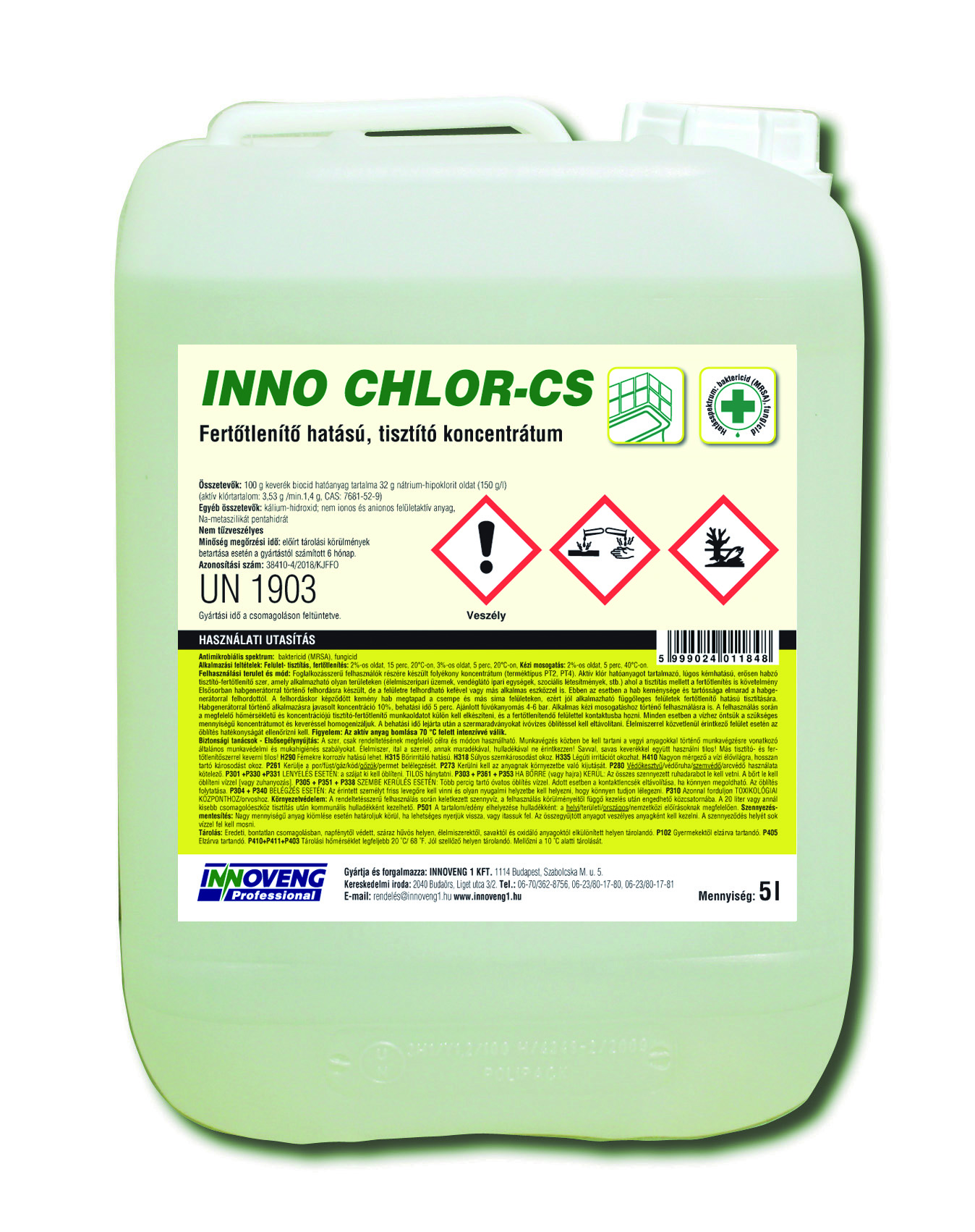 Az Innoveng Inno Chlor CS aktív klórt tartalmazó, lúgos kémhatású, erősen habzó fertőtlenítőszer, amely ideális élelmiszeripari üzemek, vendéglátóhelyek és szociális intézmények higiéniai igényeire. Baktericid és fungicid spektrumával biztosítja a mikroorganizmusok hatékony eltávolítását.