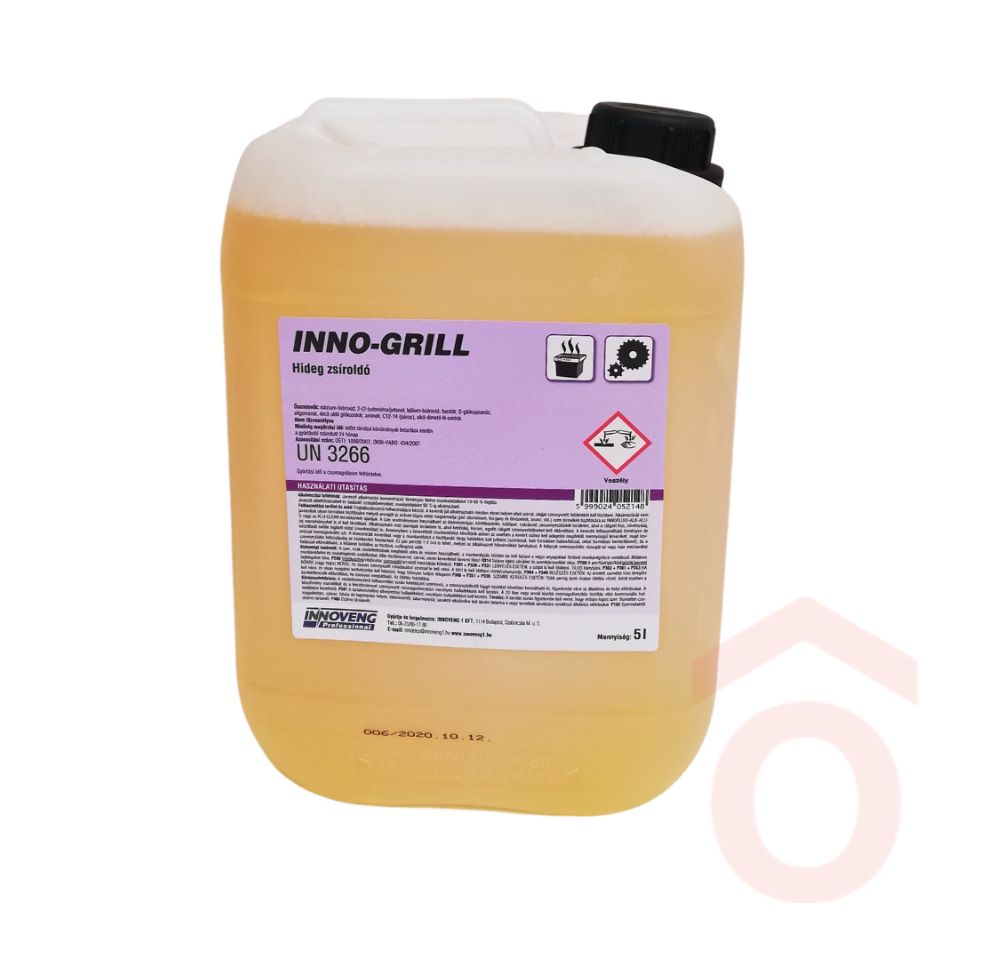 Az Inno Grill hideg zsírtalanító erőteljes hatású tisztítószer, amely hatékonyan eltávolítja a ráégett zsiradékokat, olajokat és egyéb makacs szennyeződéseket. Kiváló választás élelmiszeripari, sütőipari, közétkeztetési és vendéglátóipari környezetbe, valamint egyéb iparágakban, ahol zsíros, kormos felületek tisztítása szükséges.