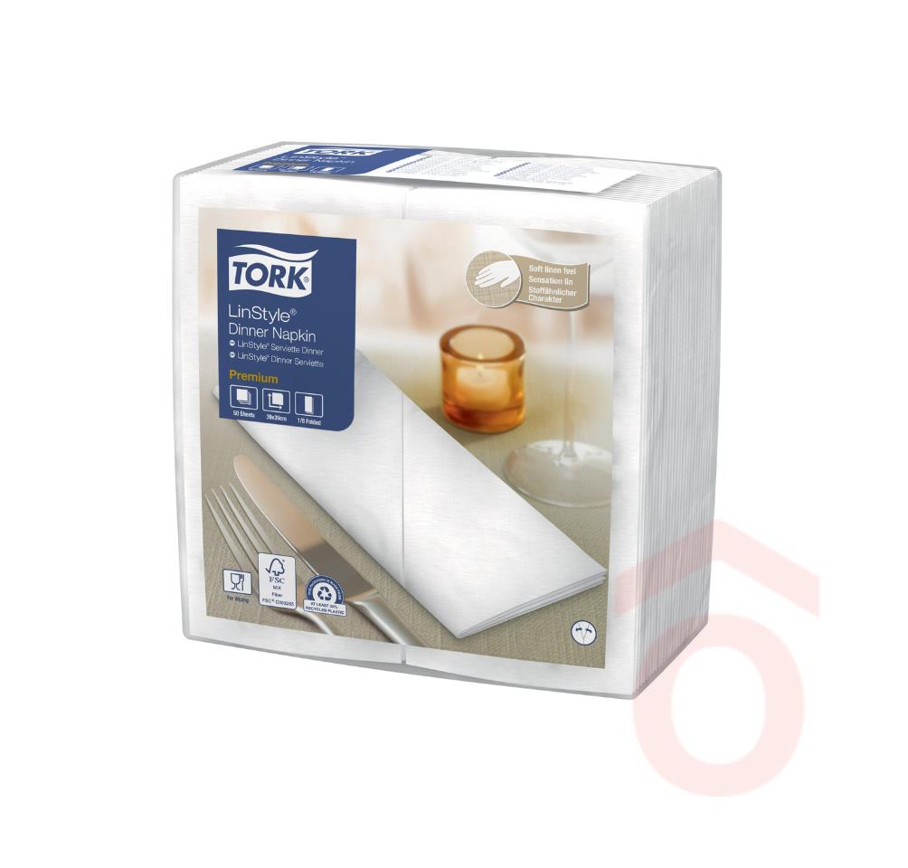 A Tork LinStyle® szalvéták prémium minőségű megoldást kínálnak a teljes körű kiszolgálást nyújtó éttermek számára. A textilhatású szalvéta rendkívül puha, tömör, és kellemes tapintású, így különösen elegáns étkezési élményt biztosít. A fehér színű kivitel kifinomult megjelenést kölcsönöz az asztalnak, a nagy nedvszívó képesség pedig praktikus használatot garantál.