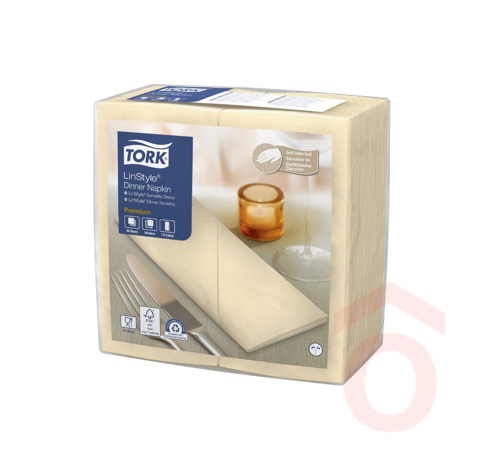 A Tork LinStyle® szalvéták prémium minőséget képviselnek, és ideálisak a teljes körű kiszolgálást nyújtó éttermek számára. A krém színű textilhatású szalvéta puha, tömör, kellemes tapintású, és hozzájárul a kifinomult étkezési élményhez. A kiváló nedvszívó képesség mellett esztétikus megjelenést biztosít, amely tökéletesen illik bármilyen elegáns asztalterítékhez.