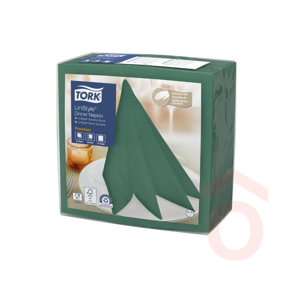 A Tork LinStyle® szalvéták stílusos, mégis praktikus megoldást kínálnak az elegáns vendéglátóhelyek számára. A zöld szín természetes, friss árnyalat, amely kellemes atmoszférát teremt az asztalon. A textilhatású, puha és vastag szalvéta kiváló alternatívát nyújt a hagyományos textilszalvétákkal szemben – esztétikus és higiénikus.