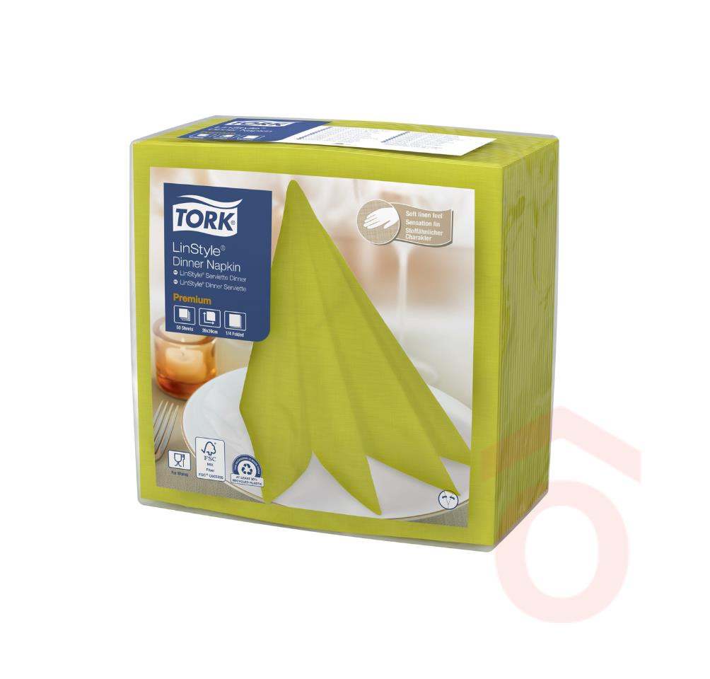 A Tork LinStyle® pisztácia színű szalvéta különleges, mégis visszafogott árnyalatával frissességet és eleganciát visz a vendéglátóhelyek asztalaira. A textilre emlékeztető tapintású, prémium minőségű szalvéta nemcsak esztétikus, hanem tartós és higiénikus is – tökéletes választás minden olyan alkalomra, ahol fontos a stílusos megjelenés és a vendégélmény.
