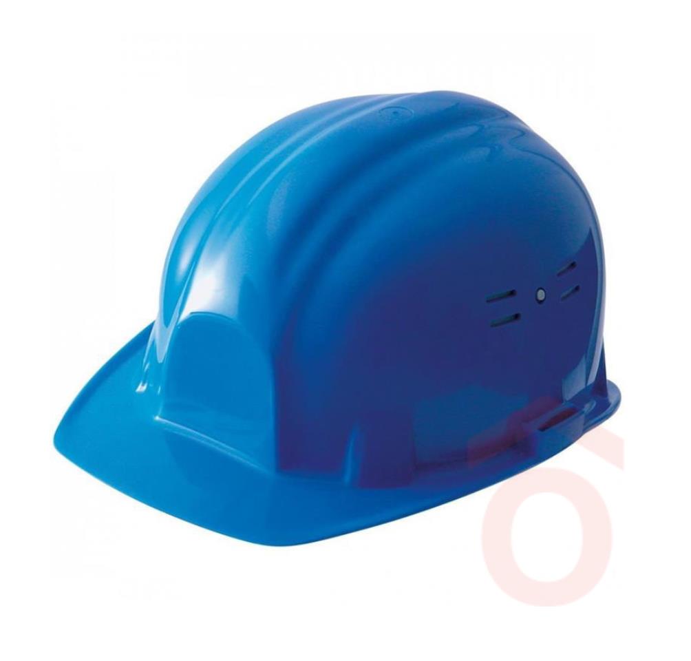 Erős polietilén sisakhéj kék színben, hallásvédőkkel, arcvédőkkel, téli béléssel (GAN65159), bevizsgált, 2 ponton rögzített sisakszíjjal (65150) szerelvényezhető