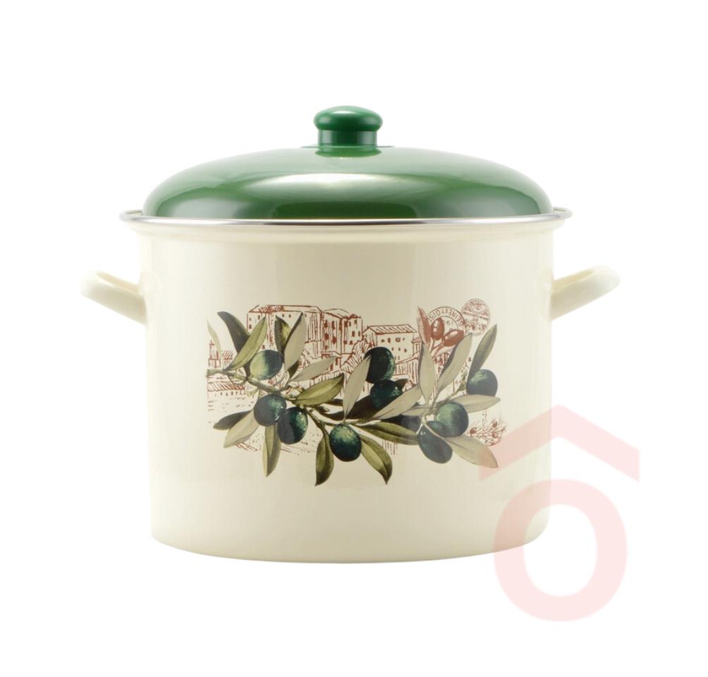 Gáz-, kerámialapos -, elektromos-, indukciós tűzhelyen egyaránt használható. Mintázat a képen látható rusztikus olivabogyó design beige színű alapon. Semleges folyékony mosogatószerrel mossa el! Kerülje a karcosodást okozó szerek és eszközök használatát!