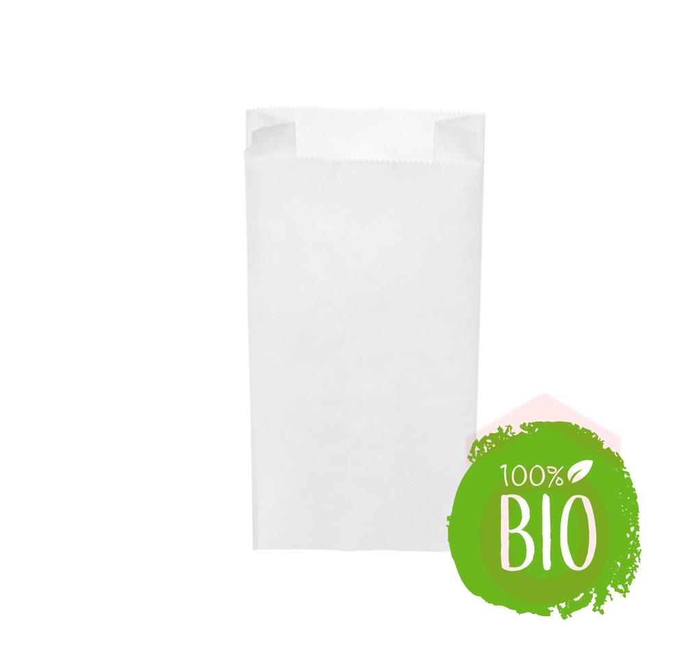 Praktikus, környezetbarát papírtasak péksüteményekhez és egyéb élelmiszerekhez. Természetes fehér színben, lapos aljjal és oldalsó fülekkel készült, így kiválóan alkalmas csomagoláshoz és tároláshoz.