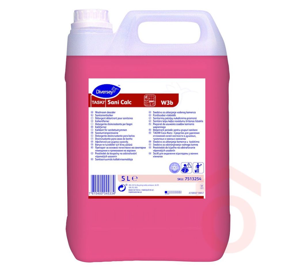 A Taski Sani Calc egy gyors hatású, savas összetételű tisztítószer, amely ideális saválló felületek időszakos vízkőmentesítésére. Foszforsav tartalmának köszönhetően hatékonyan oldja a lerakódott vízkövet, anélkül hogy korróziós kárt okozna, hiszen nem tartalmaz sósavat.