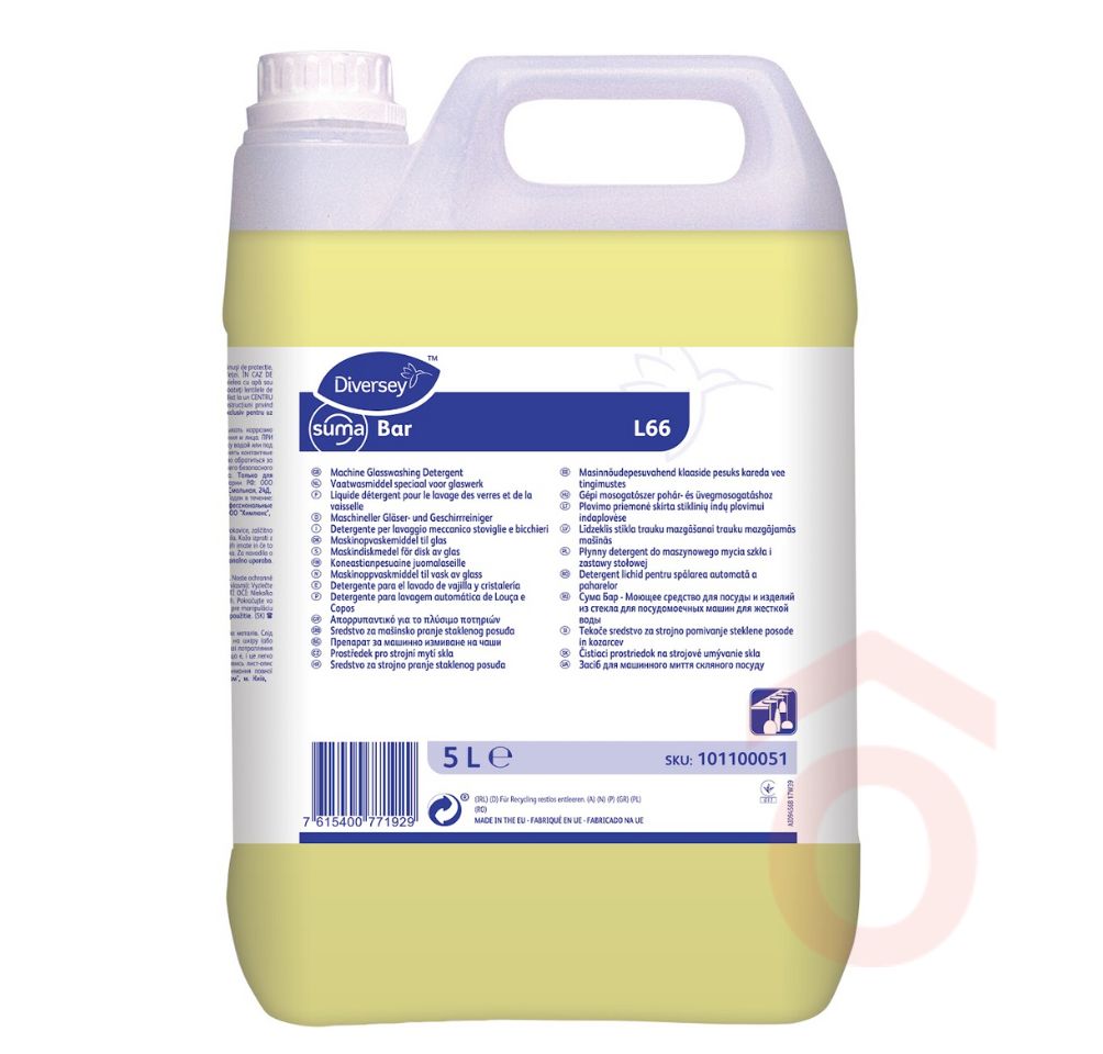 A Suma üvegfelületekre fejlesztett gépi mosogatószer egy nagy teljesítményű, lúgos kémhatású folyadék, amely kiválóan alkalmazható egy- és többtálcás mosogatógépekben. Speciális összetételének köszönhetõen kemény víz esetén is hatékonyan távolítja el a szennyeződéseket.