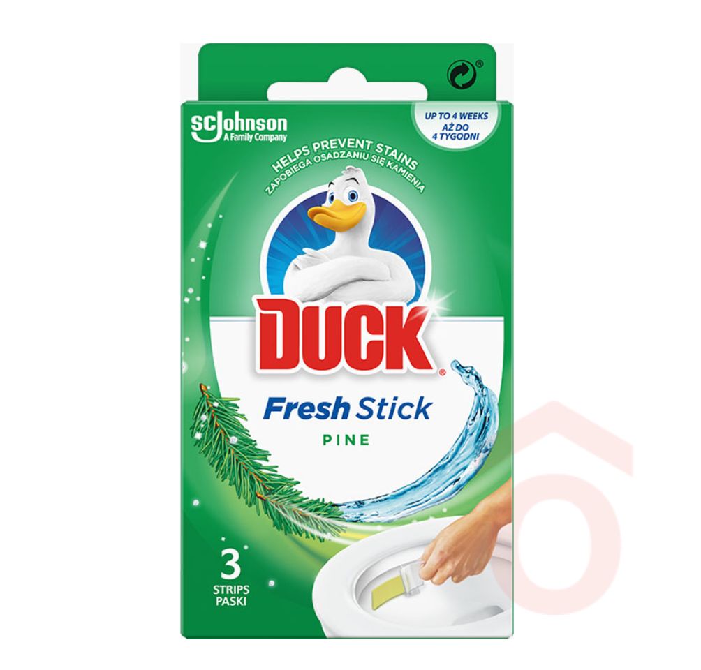 A Duck WC öblítő csík minden öblítéskor aktiválódik, és egy láthatatlan védőréteget képez a WC-csésze felületén, amely segít megelőzni a vízkő és szennyeződések lerakódását. A fenyő illatú változat kellemes frissességet biztosít minden használatkor.