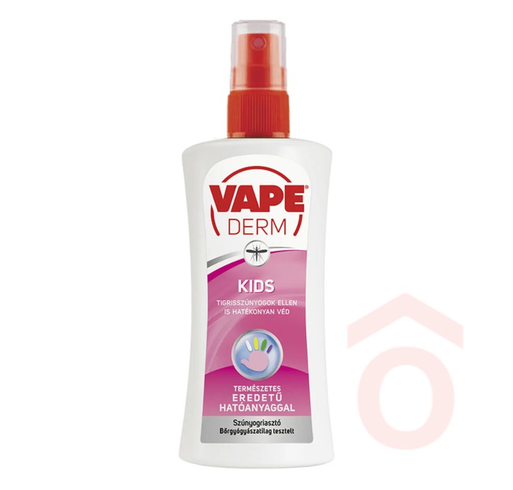 Vape Derm Kids vérszívó ízeltlábúak (pl. kullancsok, valamint hazai és trópusi szúnyogok) távoltartására alkalmas 2-3 órán keresztül. A tartósabb hatás érdekében, célszerű a kezelést 1 óra múlva megismételni.