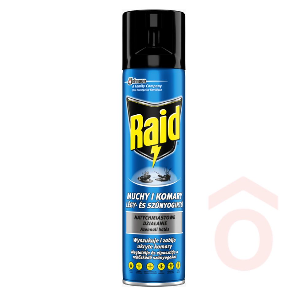 A Raid légy- és szúnyogírtó aeroszol hatékony megoldást nyújt különböző repülő rovarok gyors és azonnali irtására. Speciális formulája már rövid időn belül kifejti hatását, így segít megszüntetni a kellemetlen rovarproblémákat.