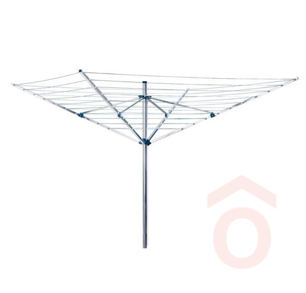 4 karos, forgatható kültéri szárító, bárhol elhelyezheti a kertben. 42 m-es szárítóterületet kínál. A szárító zsinórok vastagsága 2,8 mm. A központi rúd átmérője 3,6 cm.