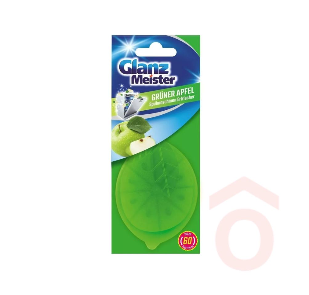 A Glanz Meister mosogatógép illatosító alma illattal semlegesíti a kellemetlen szagokat, és hosszan tartó frissességet biztosít mosogatás közben. Praktikus kialakítása révén könnyen rögzíthető a mosogatógép belsejében.