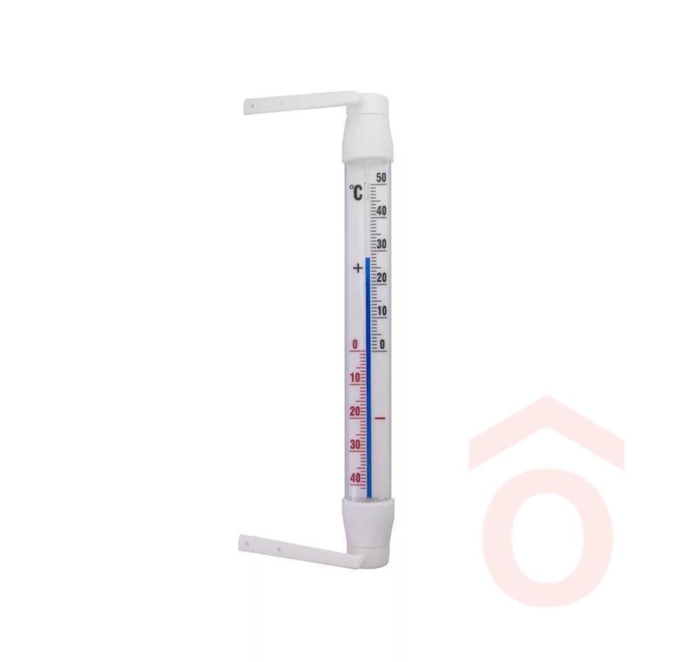Ablakra rögzíthető műanyag kültéri hőmérő (a csavar nem tartozék). Felrögzítés után forgatható a hőmérő. Hőmérsékleti tartomány: -40°+50°C. Környezetbarát, borszesz töltéssel.